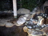 浴場は4箇所で全部貸切り制になっています。すべての浴槽が源泉かけ流しで、湯舟があまり大きくない分、湯の入れ替わりが早く、いつも新鮮な湯を楽しむことができます。 |