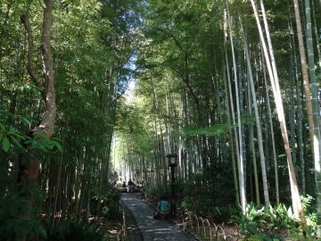 | ミシュラン2つ星を獲得して、今や「とっこの湯」と並ぶ修善寺温泉のシンボル的存在となった「竹林の小径」。早朝もいいですがライトアップされた夜もおすすめ。 |