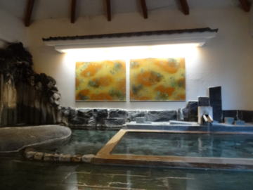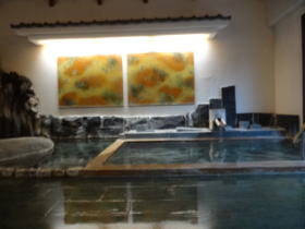 | 大浴場も決して悪くないのですが、入り比べると違いは歴然、包まれるような浴感の素晴らしい湯です。そして浴場は広々。それもそのはず、仲居さんの話ではかつては本館の大浴場として使われていたそうです。 |