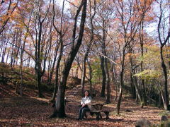 | ふかふかの落ち葉の絨毯。どんぐりもいっぱい落ちていました。 |