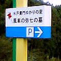 緒川村物産センター「かざぐるま」を過ぎたあたりで「風車の弥七の墓、右折」という