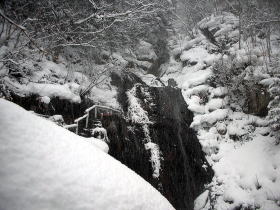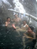 圧巻がこの露天風呂。石段を滝の中程まで上ったところにあり、真横を滝が流れ落ちます。この滝の中にも源泉があるそうです。どうりで凍結していません。