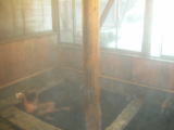 硫黄香漂う熱めの湯には暗褐色の湯の花が無数浮遊していて、泉質の確かさを実感します。露天風呂も素晴らしいですが、この内湯も気に入りました。 |