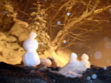 作ったのか湯舟の縁に雪だるま。 |