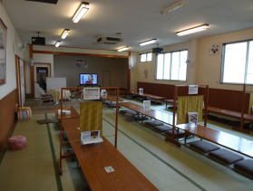 | 入浴後は大広間で食事をしたり休憩したりできます。簡単な仕切りがあって、右の写真で仕切りのこちら側は食堂ゾーン、向こう側はごろりと寝そべってもいいゾーンです。 |