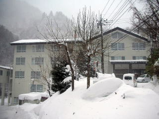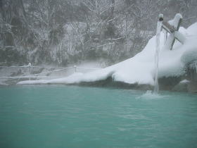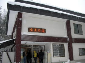 | が、寒かったです。入浴後、吹き込んだ雪に埋もれて服が凍りかけていました。 |