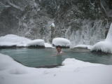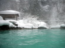 | 女夫渕の露天風呂は数は多いもののどれも同じような造りでやや単調という評価も耳にしますが、雪の中だとそんな印象は受けず、野趣あふれるいい景色でした。 |