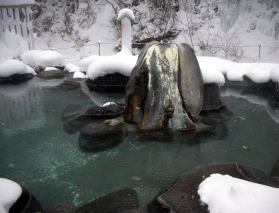 | 八丁湯に一泊した帰り、大雪のために送迎バスの出発が遅れ、鬼怒川温泉駅行きのバスが出るまで2時間もあるため、女夫渕温泉ホテルの名物露天風呂に入浴することにしました(うれしい誤算です)。 |