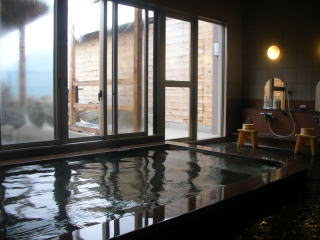 | 湯舟は内湯と露天風呂が男女それぞれひとつずつ。湯は循環式ですが柔らかい肌ざわり。リニューアルしてまだ間もなく、清潔感あふれる気持のよい浴場です。 |