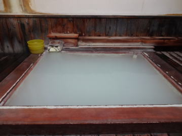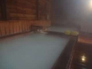 白濁したpH2.6の酸性硫黄泉はマイルドでありながら浴感満点! 素晴らしいの一言です。