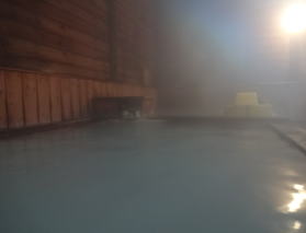 | 露天風呂は2〜3人は入れる広さ。特に眺望がいいわけではありませんが、内湯に比べて湯温が低いので、那須の名湯「鹿の湯」をじっくり味わうことができます。 |