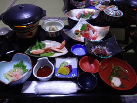 | 夕食は部屋で一回出し。若い人には若干物足りない量かもしれませんが、我々50過ぎのおやじにはちょうどいい分量。一品一品丁寧に作ってあって美味しかったです。栃木牛の陶板焼きも柔らかくて美味! |