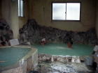 | 斜面を利用しているのでしょうか。上から寝湯、かぶり湯、打たせ湯、大浴槽の順に階段状に湯舟があります。こんな形状の浴場は初めてです。 |