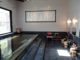 浴場の正面には自慢の温泉についての説明板が誇らしげに掲げられています。