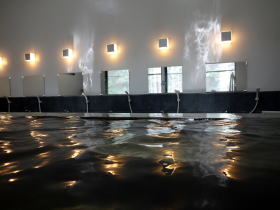 | ヌルスベした柔らかないい湯。近くのホウライ千本松牧場にある千本松温泉によく似た浴感です。熱すぎもせず温すぎもせずちょうどいい温度・・・白い壁と間接照明も美しく、いつまでも浸かっていたい温泉です。 |