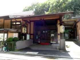 | 堂々たる送迎門を入り、なおも車を進めていくと右手にフロントのある建物が見えてきます。駐車場はさらにこの奥にあります。 |