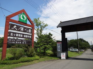料金600円は良心的な値段。良心的な立ち寄り湯のできる大浴場はフロント棟の右の建物にあります。 |