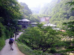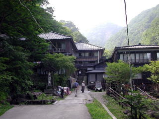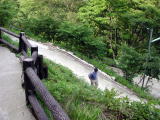 | 車は入口の駐車場に置き、谷底にある宿まで400mほど歩いて下ります。 |