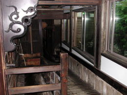 | 建物は江戸時代(安政年間)のものに増築を重ね、迷路のように入り組んでいる。宿泊料金も安政時代の部屋が7500円、明治時代が8500円、昭和のものが9500円という設定。 |
