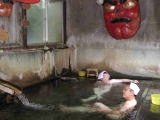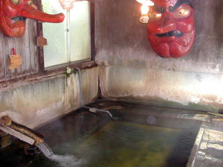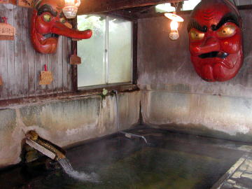 | 手前から奥へ、「天狗の湯」「打たせ湯」「ぬる湯」と続く湯小屋。 |