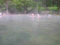 「泳ぎ湯」とも「温泉プール」ともいわれる大露天風呂。長さ15m、幅10m、深さも大人の胸まであります。