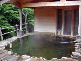 近年改築され、重厚な面持ちの北温泉の風呂にあってはさわやか感覚の露天風呂です。 |