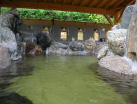 | 周囲に溶け込んだロッジ風の建物。内湯と露天風呂が男女別にあります。 |