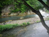男性用露天風呂は「もみじの湯」というだけあって、湯舟の上を紅葉が覆っています。秋はさぞかしきれいなことでしょう。転落防止のためのフェンスが少々邪魔ですが、箒川を見下ろす雰囲気の良い風呂です。