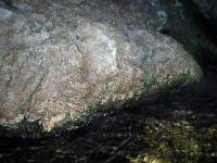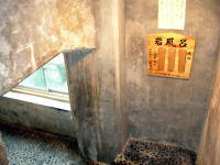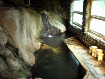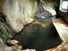 自然の巨岩がそのまま利用された湯舟で、5人くらいは入れる広さです。「カッコウの湯」のような広々とした浴場もいいですが、このようなやや閉塞感のある浴場もいかにも「風呂」といった感じで味わいがあります。 |