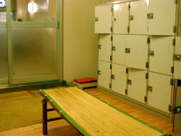 下駄箱に靴を入れて鍵をかけ、料金を払ってその鍵を渡し、代わりに脱衣所のロッカーキーを受け取るというシステムです。 |