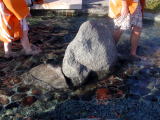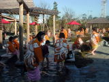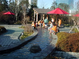 ●大江戸足湯 東海道五十三次をたどるという設定のなが〜い足湯。実は底に小石がはめ込まれていて足つぼを刺激するようになっています。その痛いこと! 日本橋から京都まで歩き通すなんてとてもとても・・・・・でもくせになりそう。