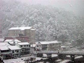 | 到着した日のうちに河原風呂と株湯を味わっておいてよかったです。というのも、翌日は三月にして積雪25cmの大雪となったのでした。でもこんなに感動的な雪景色を見ることができ、幸運でした。 |