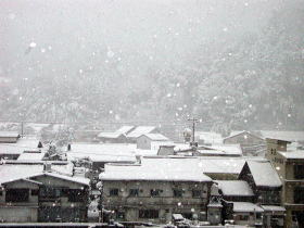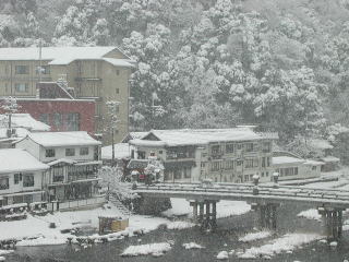 | 宿の部屋から見た雪の温泉街 |