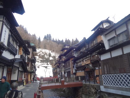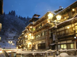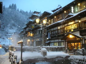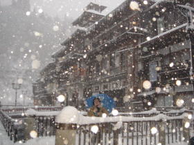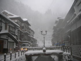 こんなことを言ったら北国の方に叱られるかもしれませんが、雪にも恵まれて銀山温泉は感動の景色でした。温泉情緒としては5本の指に入る温泉地だと思います。 |