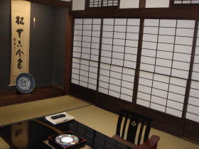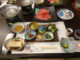 | 夕食は部屋(団体の場合は個室ダイニング)で、朝食は大広間でいただきます。 |