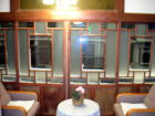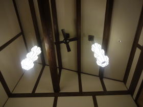 | 外から見える望楼部分は談話室になっています。飾り障子、ビロード張りの椅子、吹き抜けの天井から吊るされたシャンデリア・・・素晴らしい空間です。 |