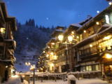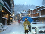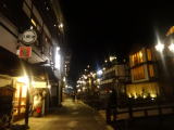 | 午後4時半過ぎ。ガス灯に明かりがともりました。雪に煙る温泉街にほんわかとしたロマンティックな空気が漂います。 |