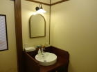 トイレ(ウオッシュレット)が付いているのもうれしい。後付けなのでしょう。かなり狭いですが、こういう古い宿は共同トイレがあたりまえなのですから文句は言えません。(*大規模リフォームでこのあたりも解消されたかもしれません。) |