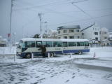 今回は列車の旅。最寄駅の山形新幹線大石田駅で宿の送迎バスが待っていてくれます(13:40と15:45の2便、 要予約)。銀山温泉までは通常だと約30分程で到着します。 |