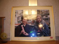 フロントの奥に大女将と乙羽信子さんのツーショットが飾ってありました。お二人とも伝統の銀山こけしを持っています。