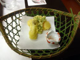 揚げ物: 筍挟み揚げ たらの芽 紅花塩 |
