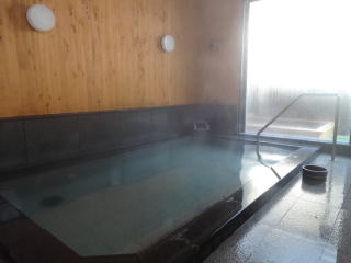 | 湯舟は5〜6人はゆったり入れる広さ。やや熱めながら肌触りの柔らかい湯がかけ流されています。 |