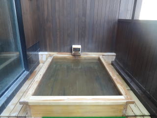 | こちらが露天風呂。定員3人がぎりぎりでしょうか。特に眺めがよいわけではありませんが、温めなので長湯ができます。 |
