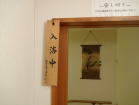 | 入口の札で使用状況を確認します。空いていれば札を反して「入浴中」にして内鍵をかけて利用します。 |