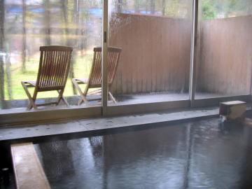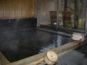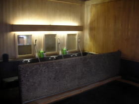 チェックインしてから夜まで男性用になるのがこちらの浴場。檜の湯舟は6人ほどは入れる大きさです。
