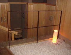入口の札が「空いています」ならOK。裏返して「入浴中です」にして内鍵をかけて入ります。