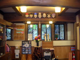 | そして宿に到着です。外観はそっけない山小屋風ですが、玄関から先はとてもきれい。それもそのはず、平成17年に建て替えたばかりだそうです。 |