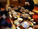 | 食事は夕食は17時30分から大広間で。ただし二人連れの場合は部屋食になるようです。 |