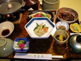 | メニューは鯉の甘煮や洗い、米沢牛(希望的観測)の陶板焼き、山菜料理など地のものが中心で、美味しかったです。宿泊料金や立地条件を考えればコストパフォーマンスはかなり高いと思います。 |