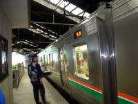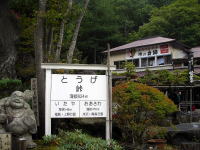 | 今回は学生時代の仲間5人での列車の旅です。東北新幹線から福島駅で奥羽本線米沢行きの普通列車に乗り換えて降り立ったのは峠駅。 |